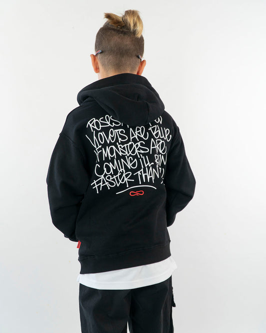 Felpa con zip e scritta sulla schiena DISCLAIMER