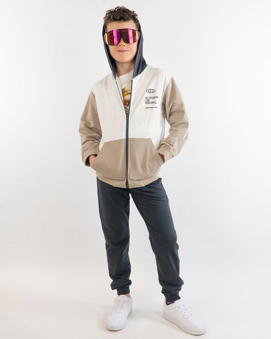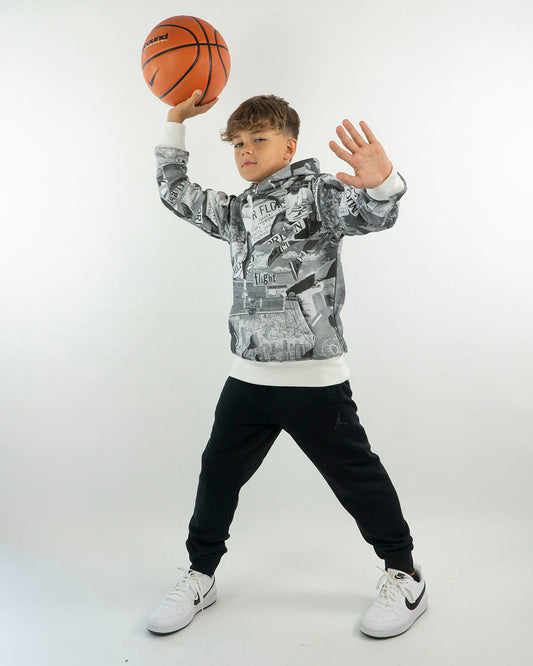 Felpa stampa basket con zip e cappuccio FKM
