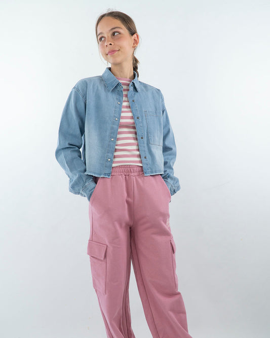 Camicia in jeans sfrangiato corta e larga I DO