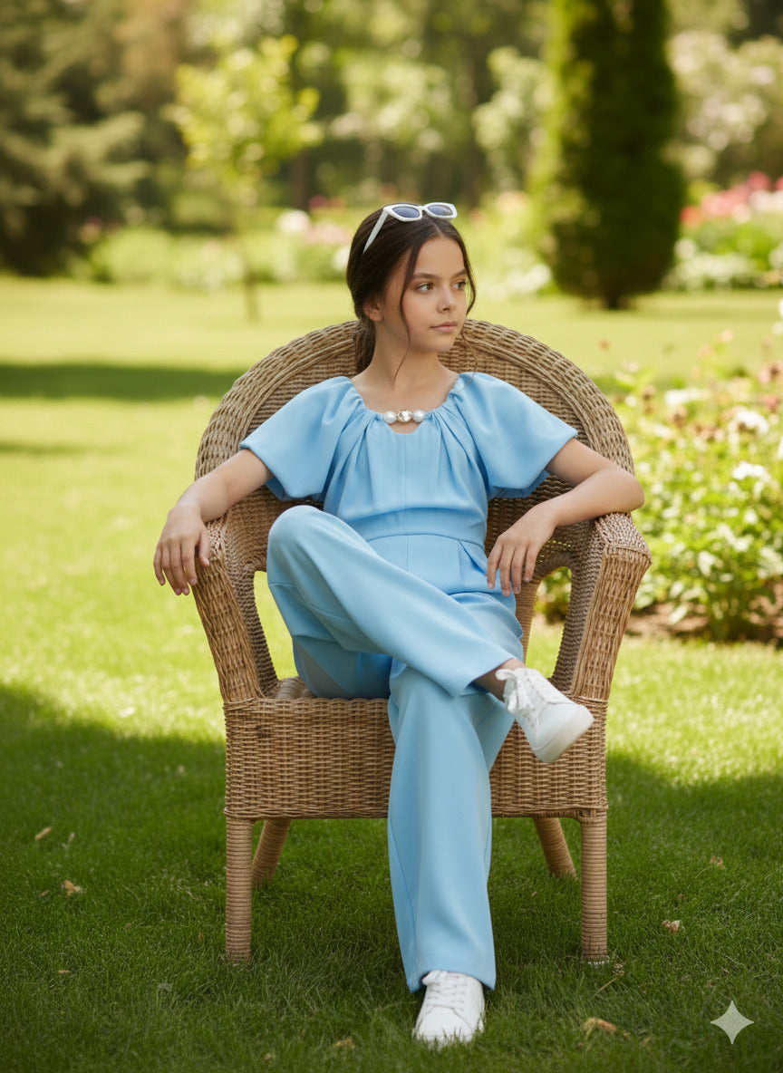 Tuta con manica a sbuffo e perle ABEL & LULA