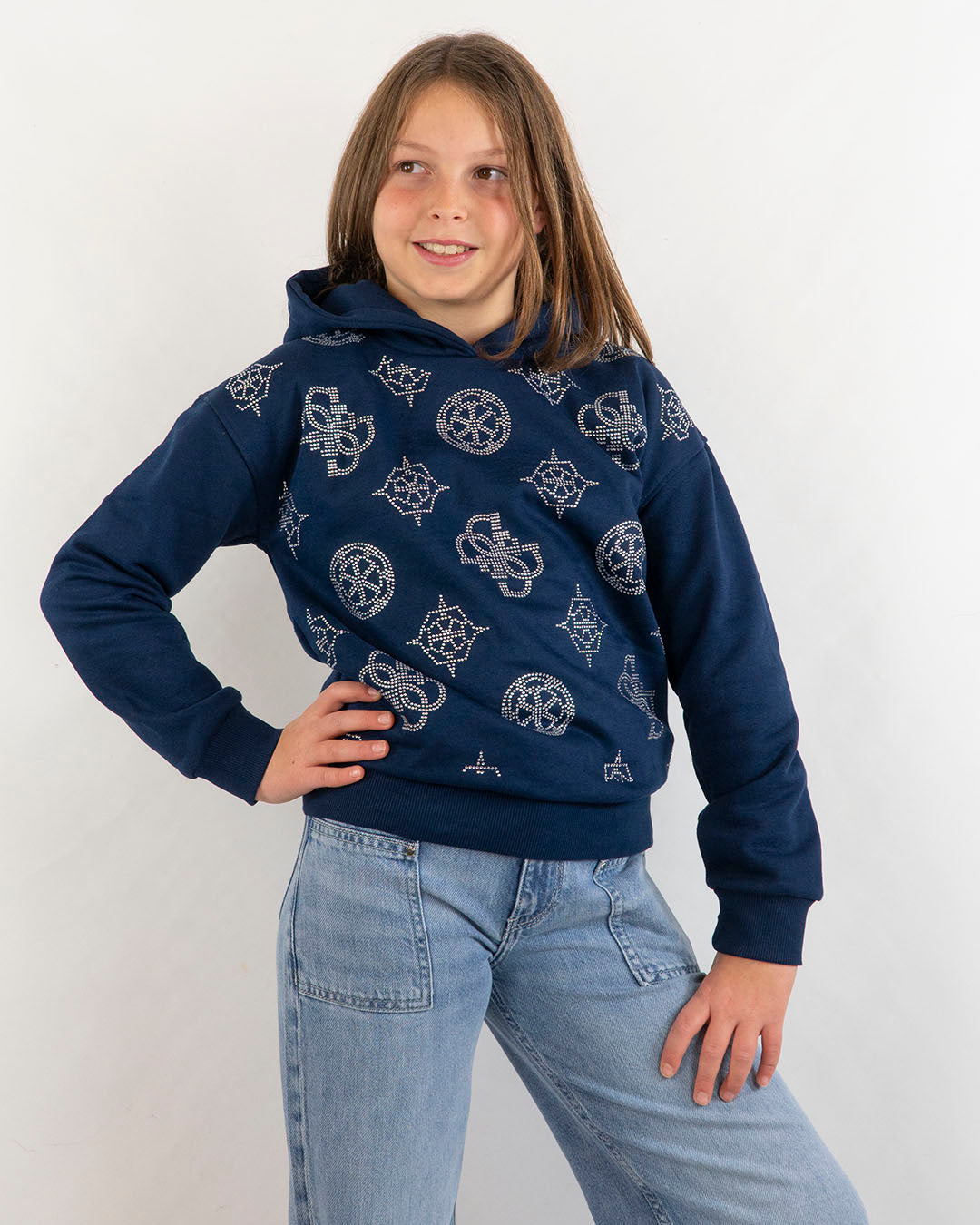 Felpa chiusa felpata con strass GUESS